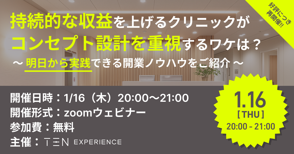 クリニック経営の成功は、適切なコンセプト設計から始まります。本セミナーでは、クリニック開業を検討している医師や経営者を対象に、持続的な収益と理念の両立を実現するコンセプト設計の重要性と具体的手法をお伝えします。経営の全体像を把握しながら、あなたの理想のクリニックを言語化し、明日から実践できるノウハウを解説します。